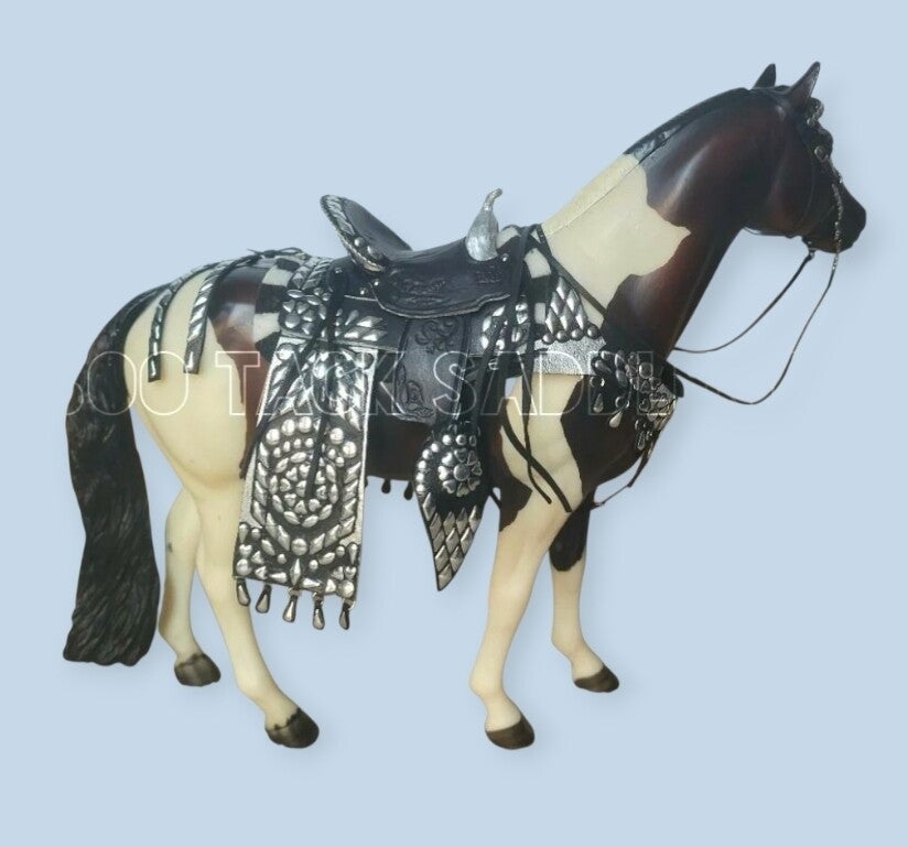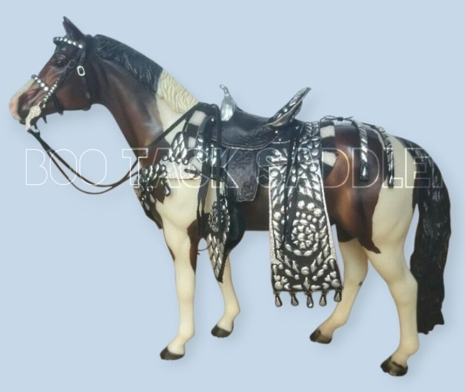 Set includes : saddle, corona pad, cinch, bridle, breastplate and hip drop.