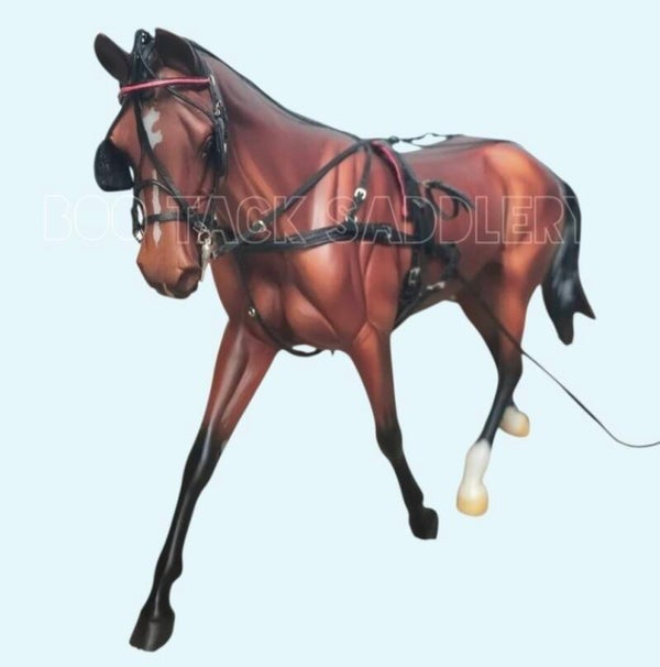 Full Fine Harness in black with red accents, all fully adjustable with buckle and tongue fastenings.