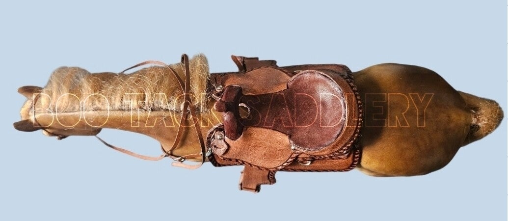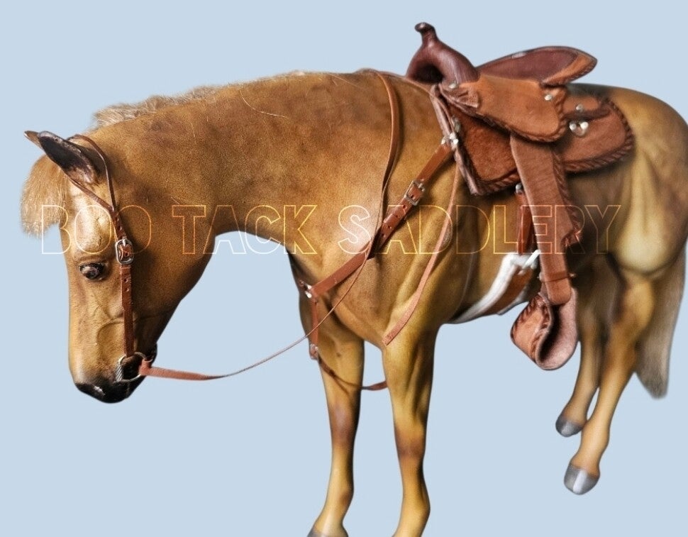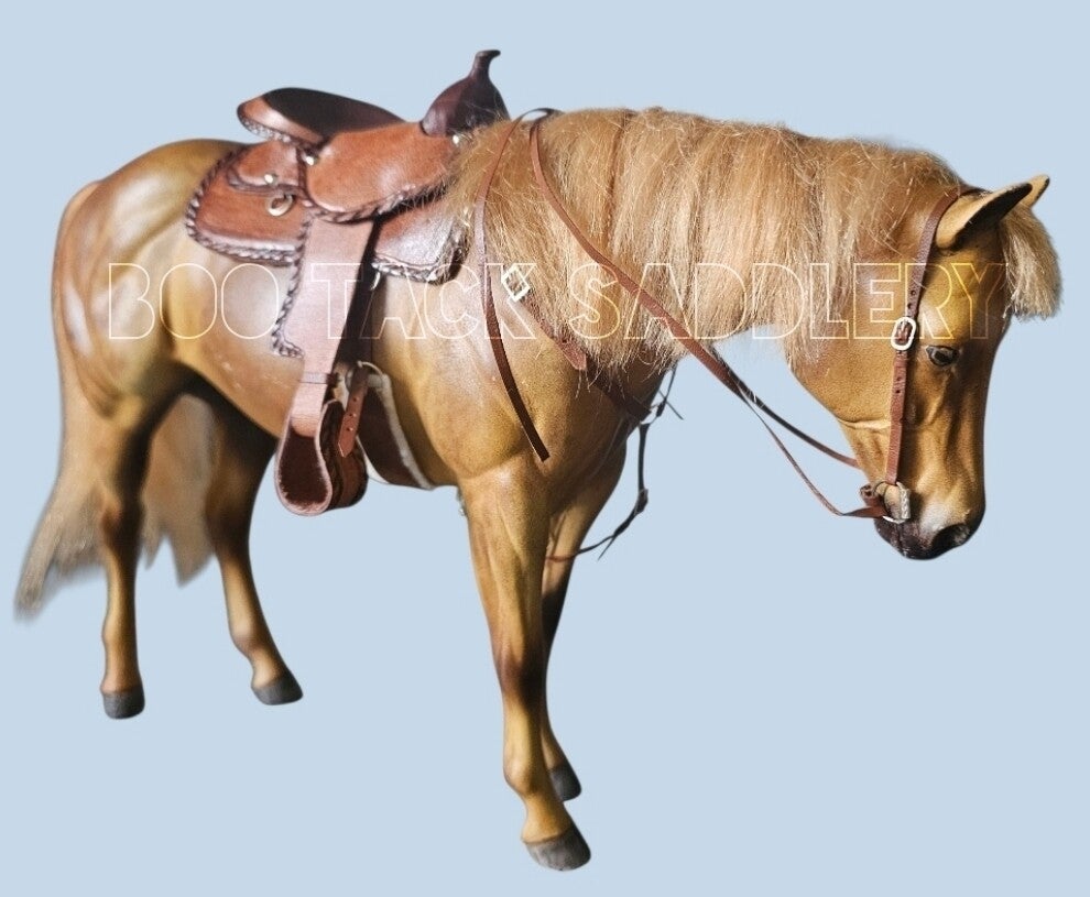 Trad scale western set with tooled saddle and working buckle and tongue fastenings.