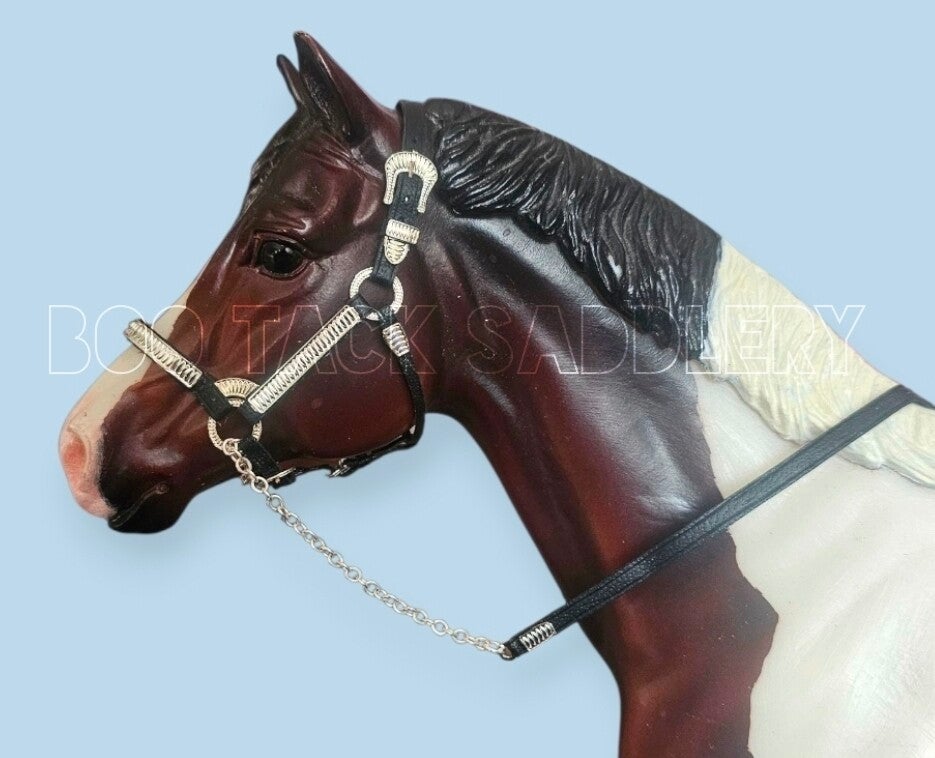 Medium Trad scale Western show halter with working buckle and tongue fastenings.
