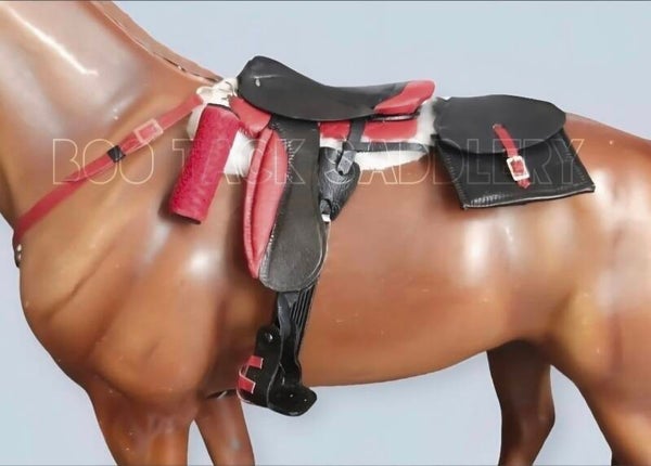 Full Endurance set, includes: 2 in 1 bridle halter combo, breast plate, saddle, 2 bag saddle bag, water bottle and a fleece half pad.