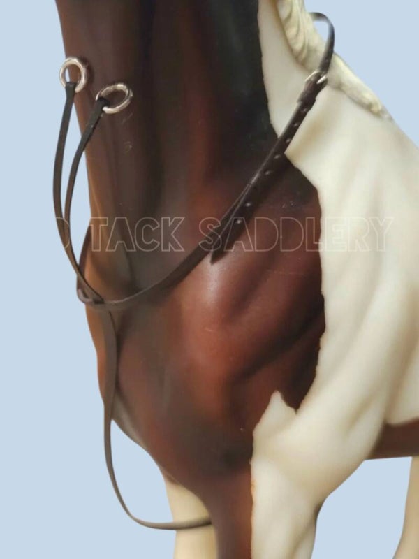 Perfect for jumping scenes. This set includes: snaffle cavesson bridle, running martingale and a jumping saddle. Fully adjustable with either slider buckles (standard) or buckle and tongue (deluxe) fastenings.